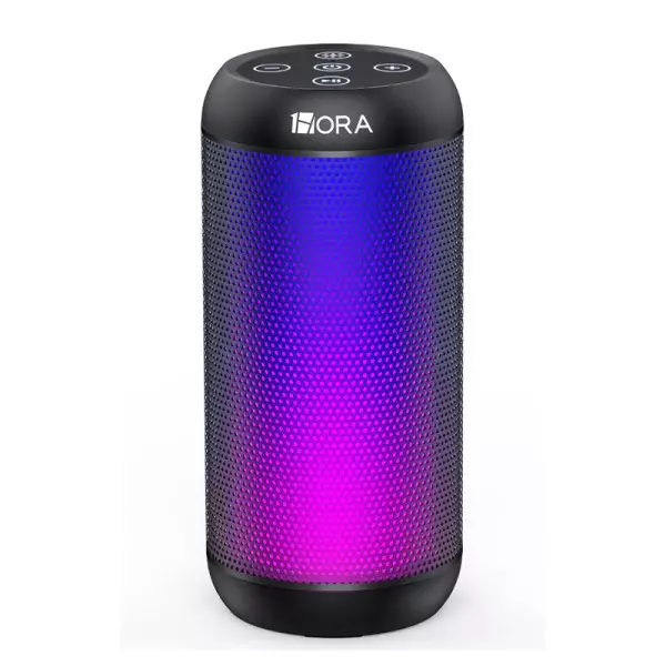 Caixa de som Bluetooth cilíndrica e compacta com som potente de 10W, 12 horas de reproducao e resistencia a agua IPX5. Perfeita para aventuras ao ar livre. Conecta-se a todos os smartphones/tablets via Bluetooth 5.1.