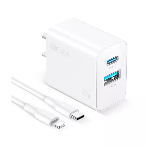 O carregador rápido de 2 portas oferece carregamento ultrarrápido com USB-C PD 3.0 (20 W) e USB-A (18 W), carregando seu iPhone 14, 13 ou 12 até 70% em 30 minutos e outros dispositivos até 50% em 45 minutos.