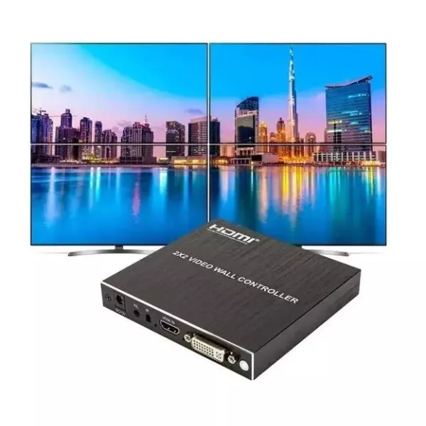 este controlador Vídeo Wall 2x2, 4K, 4 Telas, suporta entrada HDMI ou DVI e 4 saídas HDMI, a principal função é dividir um sinal de imagem HDMI, DVI HD completo em 4 blocos atribuir a 4 unidades de exibição de vídeo (como unidade de projeção traseira, TV LCD, Monitores, Projetores, entre outros com entrada HDMI.
