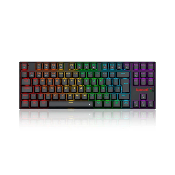 Teclado com formato TKL, iluminação rainbow com software e switches mecânicos marrons em um teclado completo e poderoso, ideal para quem busca performance e estilo.